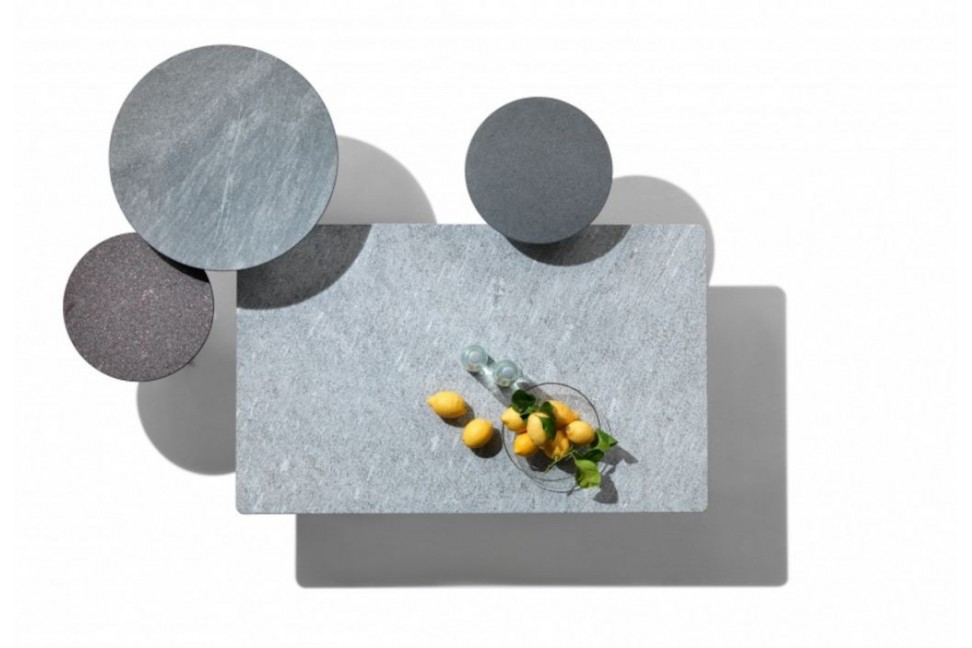 This table, in the version expressly designed for an outdoor setting, has a stainless steel base proposed with a burnished finish or painted in white, khaki green and wine red color; for the top, it is possible to choose from a range of elegant outdoor stones, such as Beola argentata (silvery green gneiss), lava stone, Cardoso stone and porphyry. The Fly Outdoor coffee table by Flexform is available in various sizes and in the version with round or rectangular top; in this case, the top comes also with iroko solid wood slats in natural or white and gray painted finish.