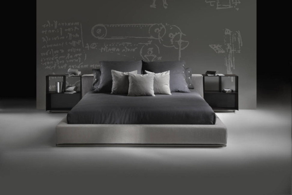 Groundpiece by Flexform is a double bed marked by a low headrest.
