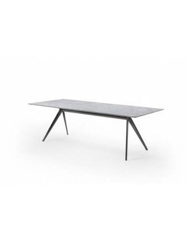 This table is characterized by the sleek lines of its aluminum legs, available in white, khaki green, wine red, burnished and satin aluminum finish; for the top it is possible to choose from the Flexform selection of elegant outdoor stones, as Beola argentata (silvery green gneiss), Cardoso stone, lava stone and porphyry.
