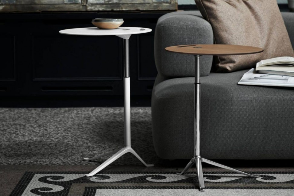 The top of the coffee table is available in oak and walnut, or laminate in different colors, and the base can be made in the same color of the top. Republic of Fritz Hansen, a company known around the world for the high quality materials, produces the Little Friend small table in two versions: a height-adjustable one or a fixed height one.