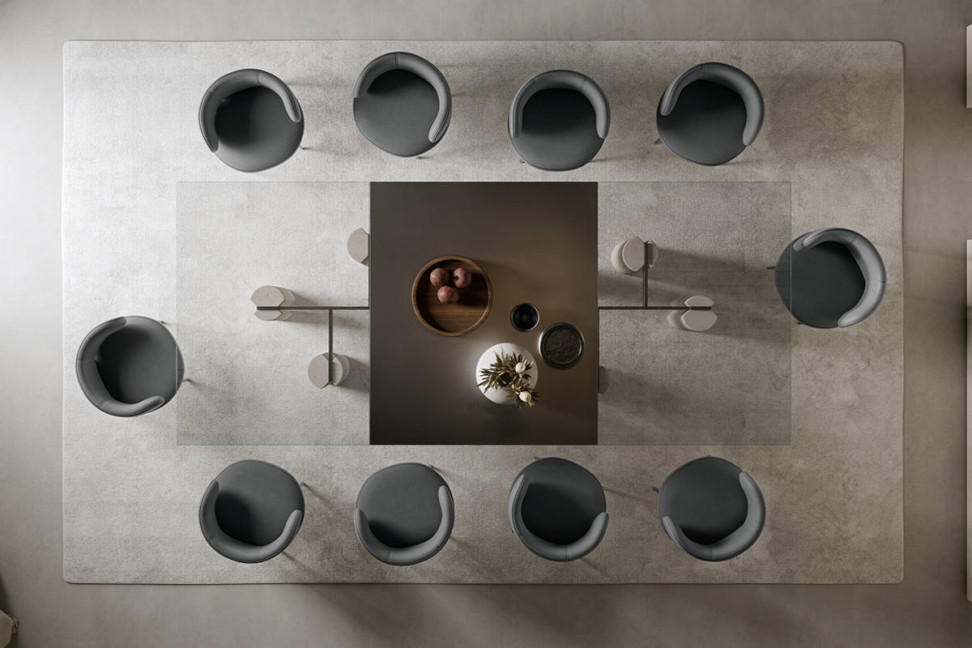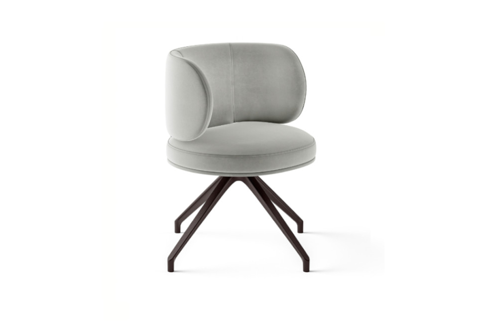 The Akiko chair by Gallotti&Radice, bears the signature of designers Oscar and Gabriele Buratti and is characterised by a line reminiscent of traditional oriental furniture. This chair has an upholstered seat and backrest covered in fabrics and leathers from the sample collection; the base is in metal, and is available with a warm grey finish.