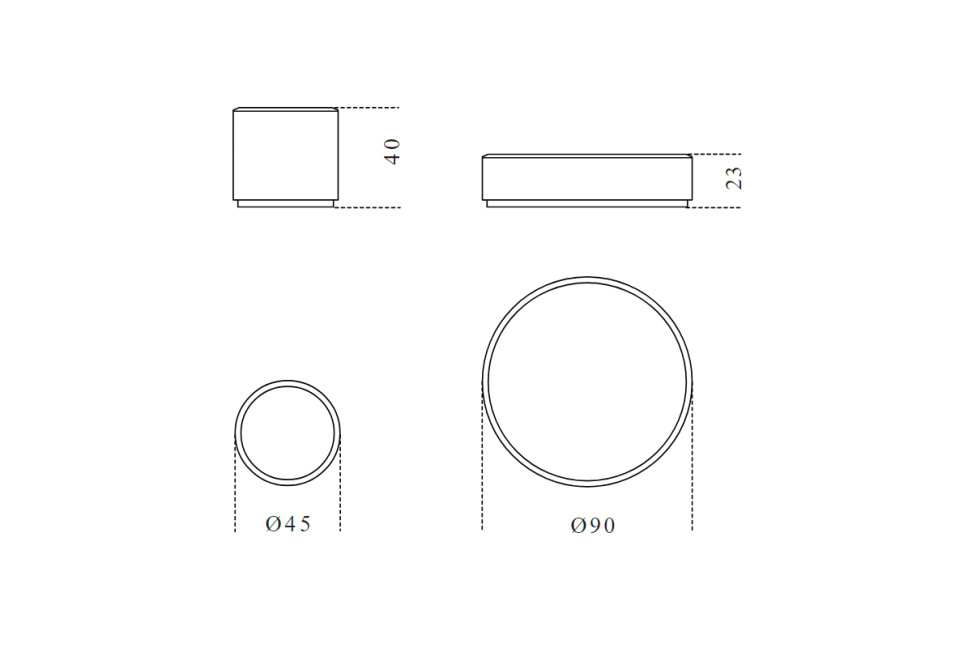 Dimensions: n.1 coffee table cm ø90x23h, n.1 coffee table cm ø45x40h