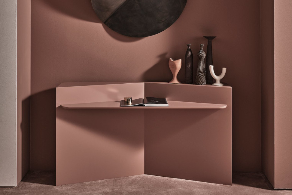 The Hanami console, designed by Pietro Russo and presented by Gallotti&Radice during Salone del Mobile, features intersecting geometric lines.