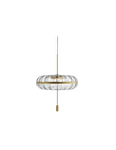 This precious piece of furniture comes from a project developed by the designer Federica Biasi, whose creative line based on formal cleanliness and attention to detail is expressed to the fullest in Jolie. In fact, the simplicity and linearity of the shapes is perfectly combined with refined and skilfully matched materials to provide an effect of sophisticated harmony. The Jolie suspension lamp is composed of a mouth-blown Murano glass diffuser and a satin brass structure that create a balanced chromatic and material contrast. In addition to the suspended version, an original wall-mounted version is also available.