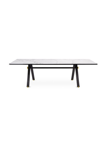 Coming from a brilliant idea of the italian designer Pietro Russo, the table can easily combine elegance and refinement. Maat stands out for its simple and defined lines and for its hand brushed aluminium structure. The top is made in white Statuario and black Marquinia marble or in painted glass. The Maat table is available in different sizes, in this way it can be perfect for any kind of room.