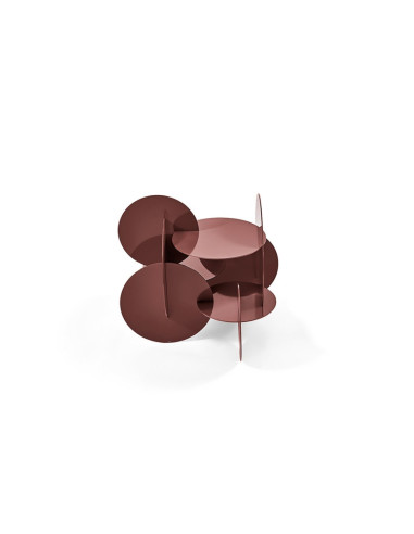 The originality of the Monete low table, designed by Massimo Castagna for Gallotti&Radice, is given by its shape: an intertwining of discs, precisely resembling coins, in hand-burnished metal. This particular metalwork makes each Monete coffee table a unique piece, giving it a naturally uneven and speckled surface.