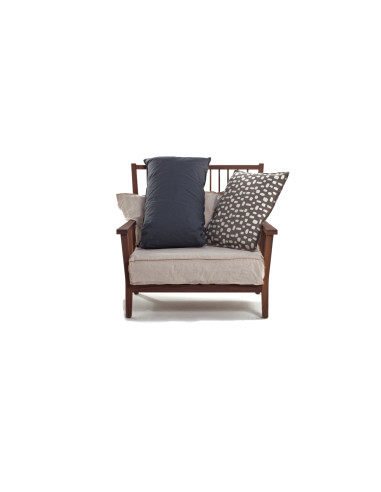 The structure of the Gray 01 armchair is available in a choice of high quality woods: natural Canaletto walnut, bleached oak or lacquered oak in various shades of white, grey, black, ocean, dove grey, date, blueberry or ginger. To ensure exceptional comfort, the cushions are filled with a mixture of feathers and the seat is complemented by comfortable floating cushions, one measuring 65x50 cm and two measuring 50x115 cm. Gervasoni is characterised by its unmistakable aesthetics and the use of high quality materials. Their attention to detail and choice of materials contribute to the creation of exceptionally elegant and durable furnishings, confirming their reputation for excellence in the world of design.