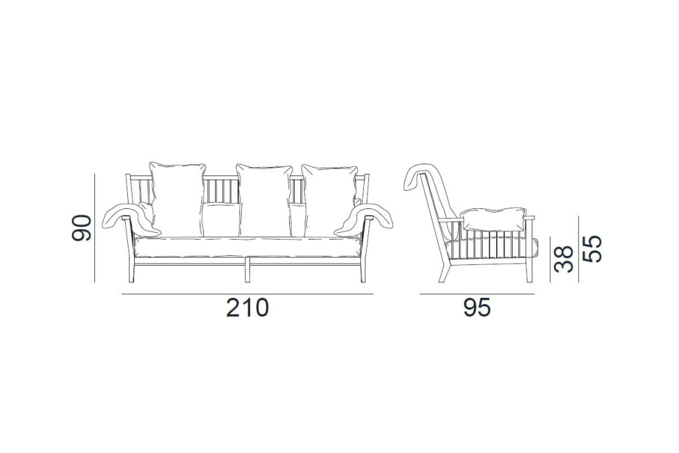 The harmonious contrast between the essential structure in natural Canaletto walnut, bleached oak or lacquered oak in white, grey, black, ocean and dove grey and the plush upholstery of the cushions gives the product a pleasing aesthetic balance. The comfort of Gray 03 sofa is further enhanced by its generous and welcoming upholstery, which invites you to relax and enjoy moments of pure leisure. Every detail has been carefully considered to ensure an unparalleled sitting experience. For a truly immaculate Nordic-inspired living space, you can combine the Gray 03 sofa with either the Gray 01 armchair or the Gray 06 bergère armchair, both part of the Gray collection designed by Paola Navone. This combination not only creates visual harmony in the environment, but also offers the possibility of creating a cosy and inviting area for relaxation and socialising.