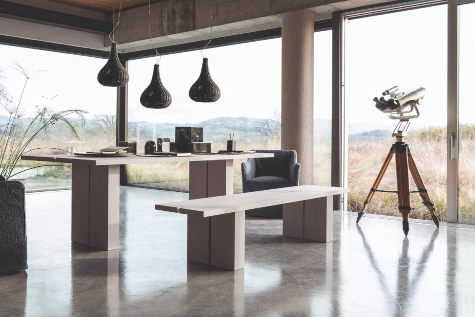 Designers Gabriele and Oscar Buratti have created the Yaku collection for Gervasoni, consisting of a dining table and bench, characterised by simplicity and essentiality.