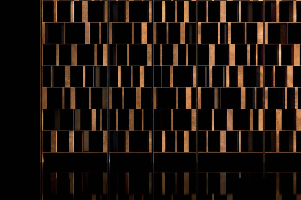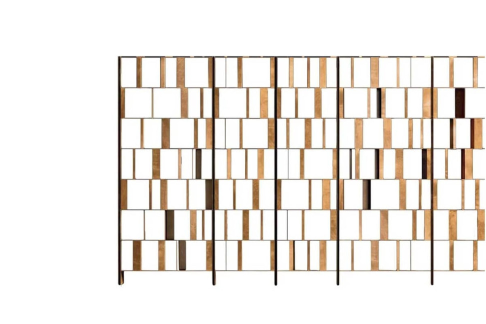 The indicated price refers to the bookshelf in the smallest size, 238x29x270h, with a burnished brass finish.