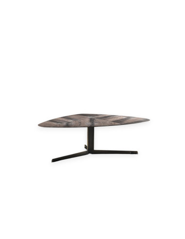 Created by the Italian designer Massimo Castagna for Hange, Gibson is a modern yet refined piece of furniture, whose thin and essential lines are embellished by the particular combination of different finishes, such as wood and stone for the top and black burnished steel for the base. Geometric shapes and balanced volumes give the coffee table a strong and contemporary character. Gibson is available in various sizes that can suit any kind of necessity.