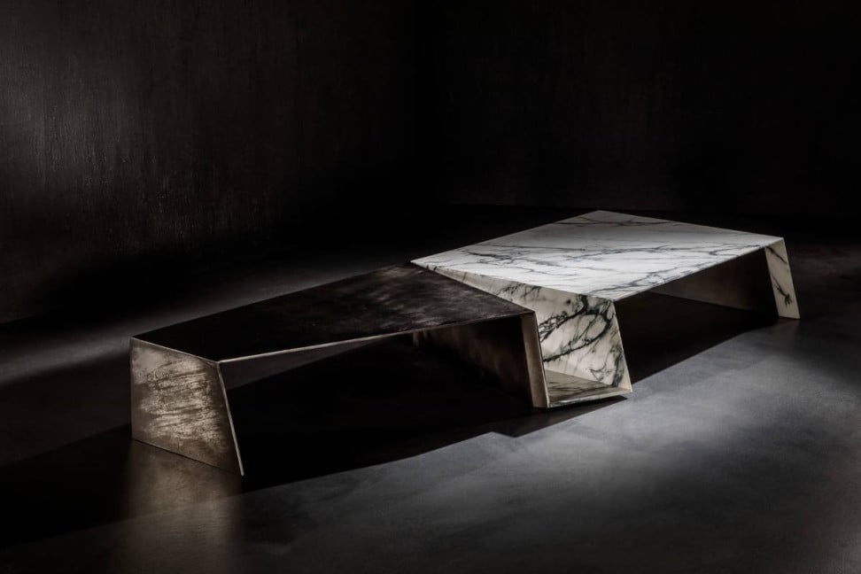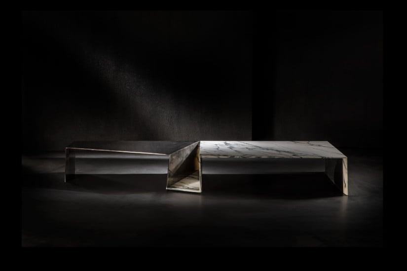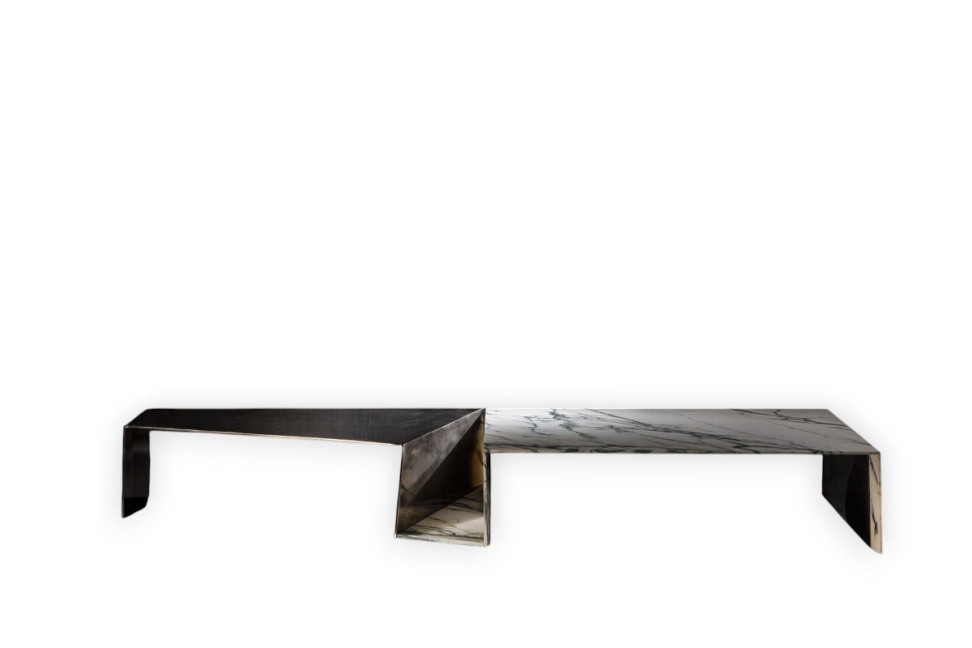For the Origami coffee table presented by Henge, the designer Ugo Cacciatori drew inspiration from the famous Japanese paper works from which it takes its name. In fact, the coffee table features an origami-like fold in the center of the structure and comes in three sizes. The two larger ones consist of two modules – one in sand cast peltro and one in stone – while the smaller one is made entirely in sand cast peltro. The Origami coffee table can transform any room while making it extremely refined.