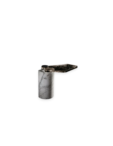 A distinctive feature of the Plynto side table, designed by Ugo Cacciatori for Henge, is the combination of different materials: the base, almost cylindrical, is in stone, while the top, which has an irregular shape, is swivel and is in glass fusion. It is possible to choose between Arabescato stone and Rapolano stone for the base, while the swivel top is in Steel Gray glass. The Plynto side table is certainly an extremely original piece of furniture, suitable to embellish any living room.