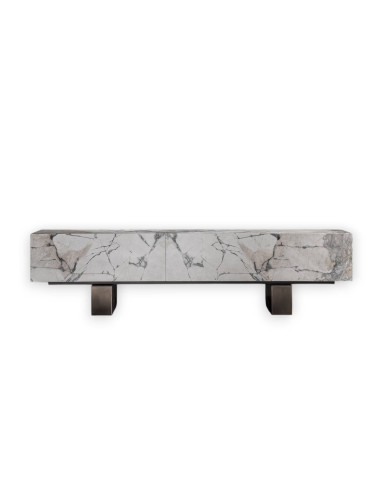 The Slim Side storage unit, by the designed Massimo Castagna in cooperation with Henge, is characterized by the combination of multiple materials; there are indeed various versions available as the structure and base can be in wood, in the various Henge finishes, or in a wide range of stones and metals, all treated according to traditional techniques. This wide range of choices combined with the multiple sizes available, makes the Slim Side storage unit a versatile and customizable complement.