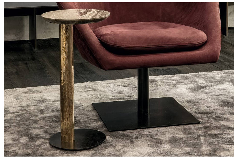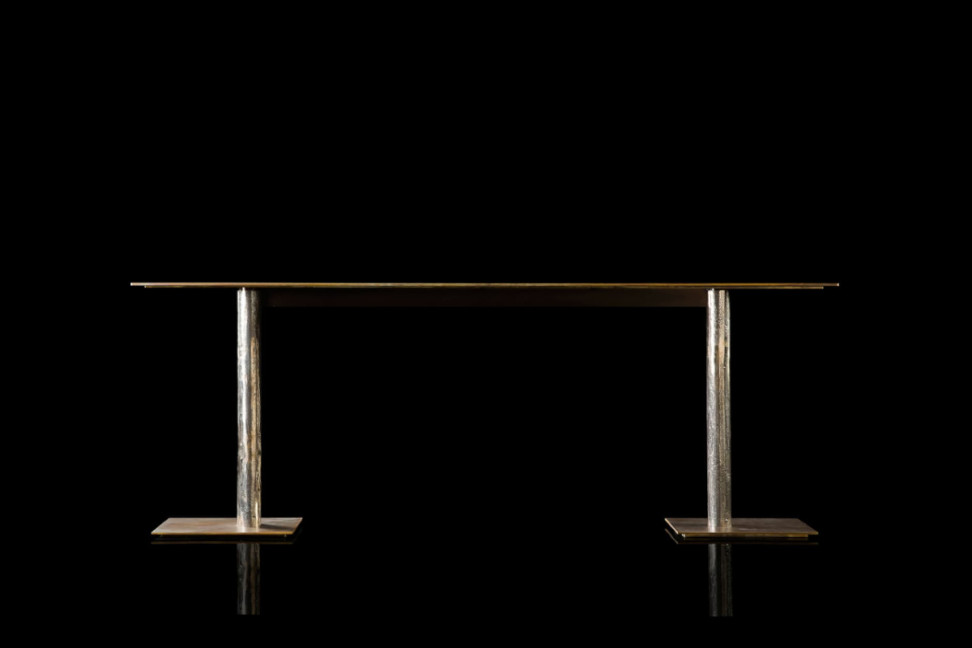 The twistable coffee table, conceived by Massimo Castagna for Henge, is created to amaze and become the protagonist of the living area following the philosophy of the famous Italian company. The line is composed of four coffee tables of different heights, dimensions and shapes, customizable thanks to a wide range of finishes: brass, bronze or silver for the metal support that joins the burnished titanium, burnished platinum, burnished brass or black burnished brass base and all the stones from Henge range for the top. The Twistable collection is also enriched with an elegant console.
