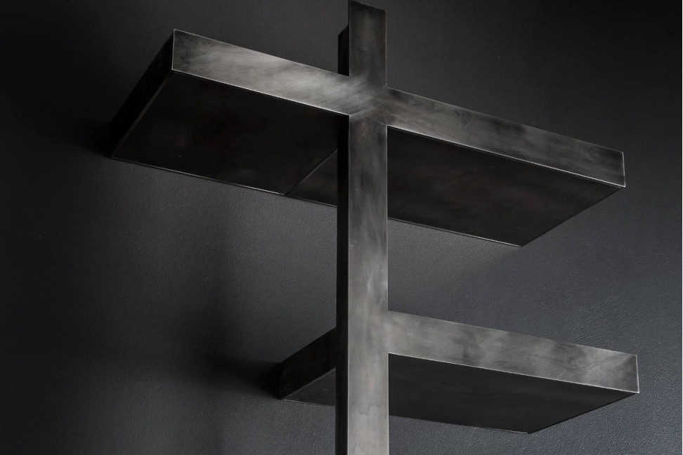 The designer Massimo Castagna conceived this bookcase for Henge, almost as if it were a work of art. We find juxtapositions of different materials – wood, metal and stone – that create an extremely elegant product, according to Henge's standards. This bookcase is characterized by simple and asymmetrical lines that give dynamism to the composition. The main structure is available in either burnished Platinum or Titanium, while the shelf inserts can be made of wood or stone.