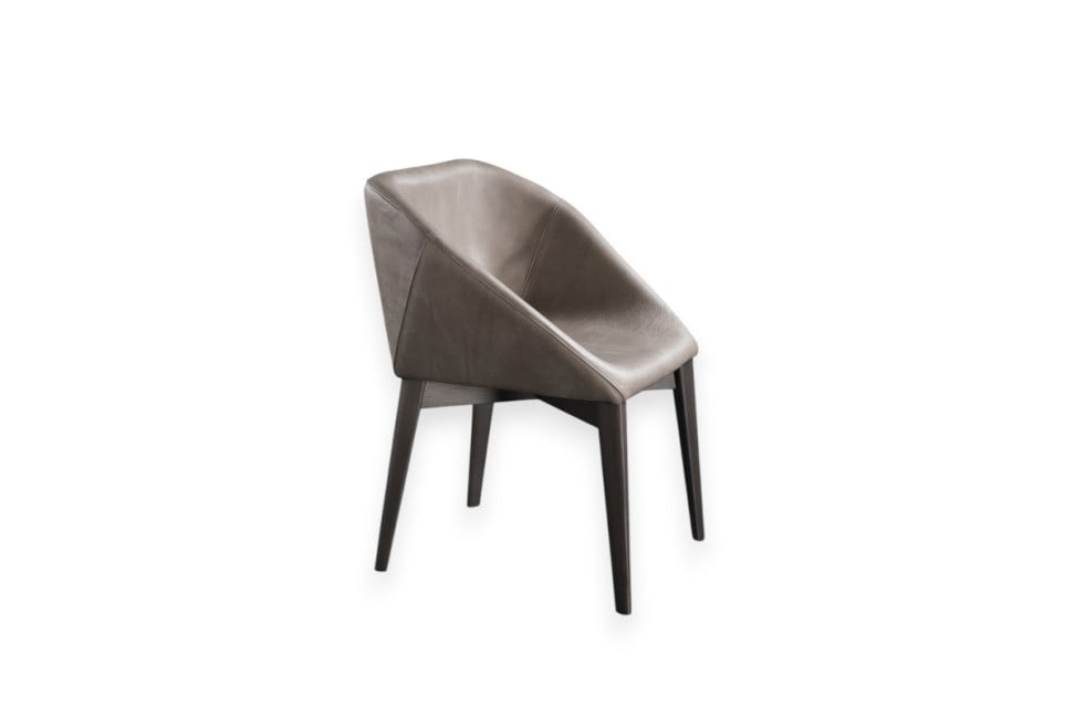 The W - Hexagon chair, designed by Massimo Castagna for Henge, has base and legs in beech wood painted with a black eucalyptus finish; the shell, with its hexagonal shape, is padded and can be upholstered in the wide range of fabrics and leathers from the Henge collection. The W - Hexagon chair measures cm.63x56x78h.