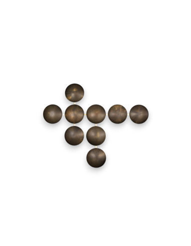 This eye-catching Wall Clips wall lamp, designed by Massimo Castagna for Henge, consists of a structure that, depending on the model, features from seven up to twelve Ø23,5 cm diameter elements put on intersecting lines that create a geometric design which varies according to the selected model. The choice of finishes is wide as well, available in burnished steel, burnished platinum, burnished titanium, burnished brass (black variant available), H-Silver, black H-Silver and polished copper. The lamp features an energy-saving warm LED light and can is suitable only for indoor environments.