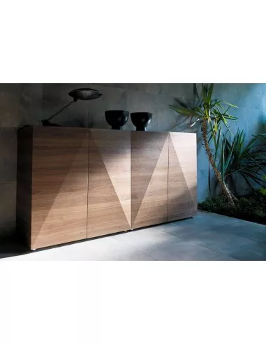 This storage unit is part of the wide collection introduced by Horm, the Italian company that realizes project on the border between design and art, collaborating with the best international artists for almost 30 years. The Not Riddled storage unit is a design item that merges architecture and movement with its doors shaped as diamonds: with the small laser cuts, the surfact is modelled like an origami. This storage unit is liven up thanks to the reflections of the light on the surfaces, and each detail is perfectly studied as the doors that can be open without hinges.