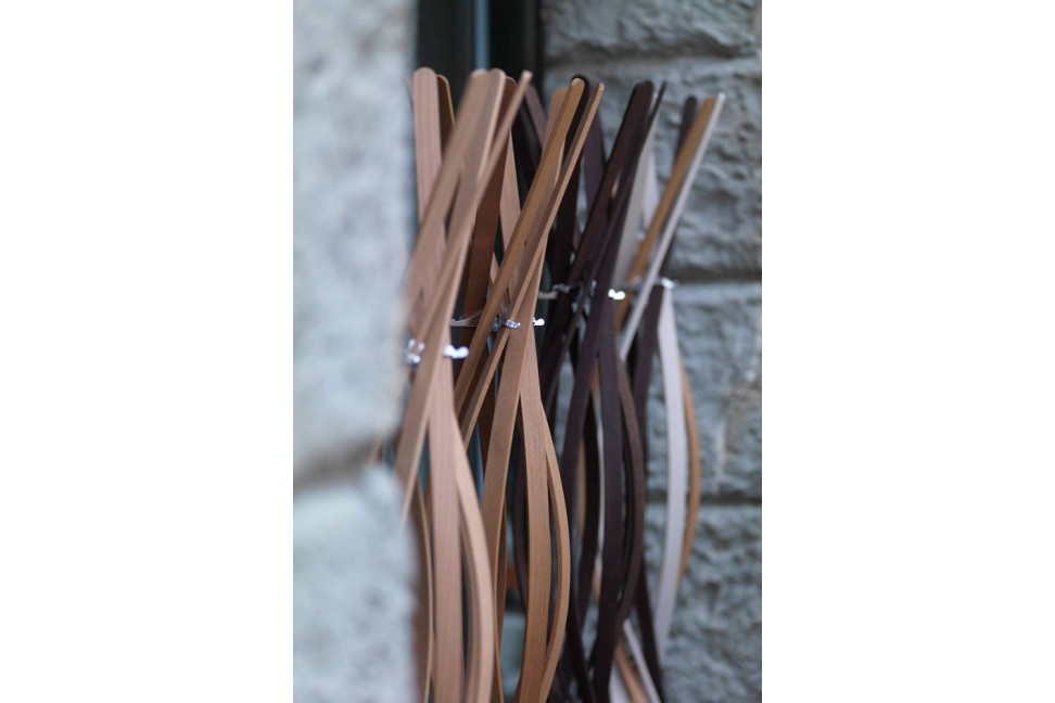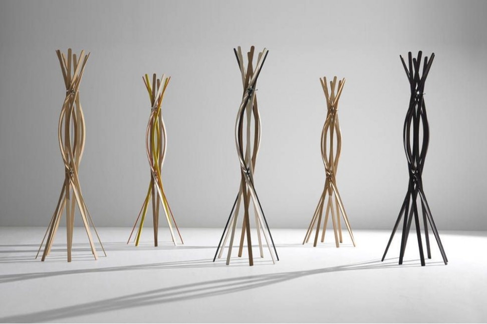 This project, conceived by the Burtscher & Bertolini design studio, was introduced by Horm, the Italian company that creates unique furniture by combining the imagination of international artist and the experience of local craftsmen for almost 30 years. The Twist coat hanger consists of eight beech slats, that twist and bend as if they were dancing. The hooks are positioned in the middle, so the hanging coats cover only a part of the hanger, giving value to the beautiful “wood flower” on the top.