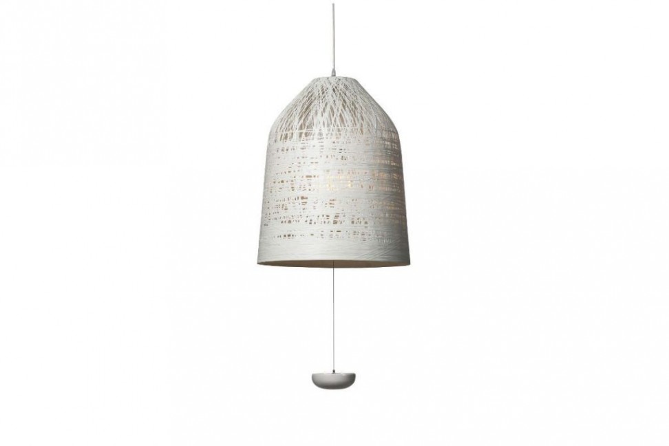 Lightness and elegance are the nouns that best describe the Black Out suspension lamp by Karman, a famous Italian company known throughout the world for the high quality of its products.This lamp, designed by the art director of the brand Matteo Ugolini, features a light bell-shaped structure in white fiberglass filament, perfect for environments with a strong character, in which the soft and graceful shapes of Black Out emerge in all their harmony. The diffuser, in addition to providing a downward pointing direct light, illuminates the atmosphere with a delicate diffused light that penetrates through the thin surface of the structure, creating a suggestive effect. Black Out is available in numerous sizes and it is possible to add a suspended candle holder at the centre of the structure. The collection also includes the floor lamp and the outdoor version.