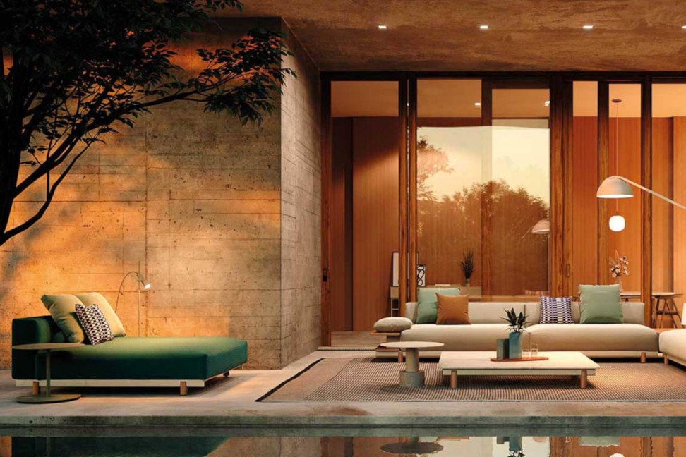 The Molo bench, designed by Rodolfo Dordoni for Kettal, represents an enriching element of the outdoor environment.