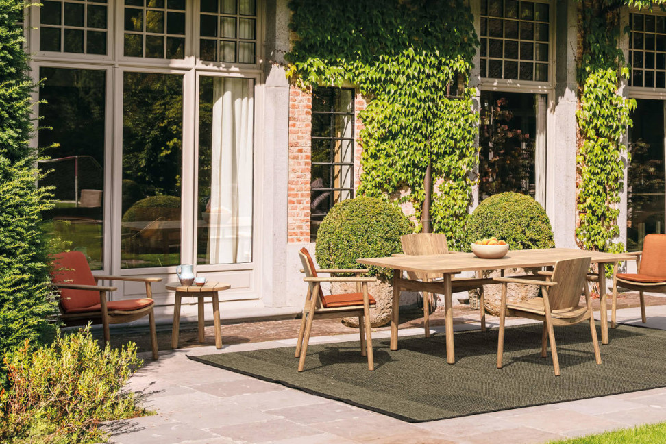 The Riva armchair, from the homonymous collection designed by Jasper Morrison for Kettal, is perfect for enriching the outdoor environment.