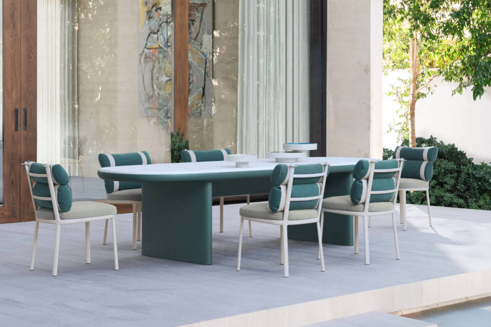 The Roll dining chair by Patricia Urquiola for Kettal has a traditional aluminium frame, characterised and highlighted by the special back cushions. A comfortable and colourful seat that also proves to be extremely functional and versatile: the cushions can be easily removed from the structure for storage in winter.