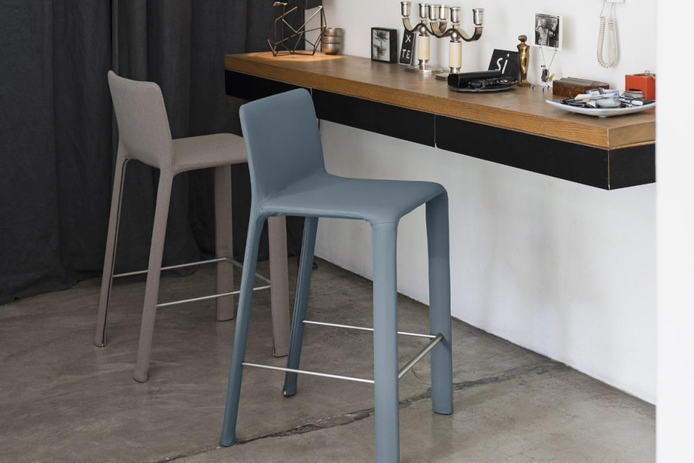 Joko by Kristalia is a highly customizable chair: in addition to existing in stool, chair with armrests, and chair without armrests versions, there are many varieties of materials to choose from for the upholstery (wool, fabric, bouclé fabric, leather). In addition, it is available in many colors, including green, white, gray, and blue.