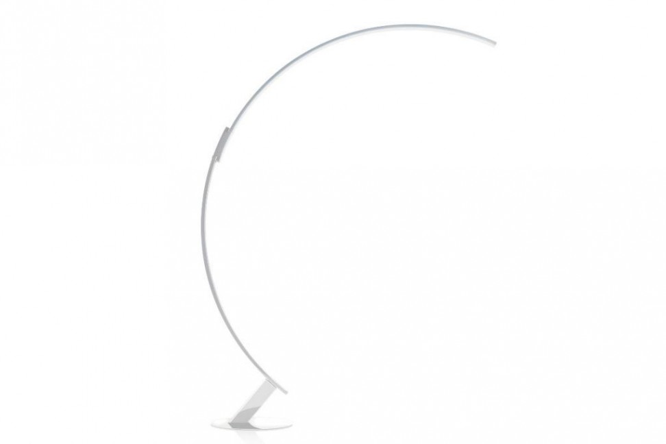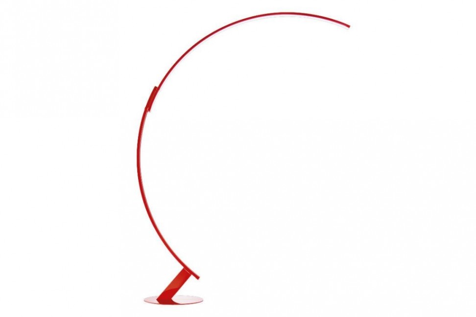 The Kyuto floor lamp features a structure in extruded aluminum with a glossy finish, and a diffuser, on the internal side of the arch, positioned on a sliding track that can be adjusted according to the necessities. Kyudo can, therefore, assume a half-arch configuration, also useful for facilitating the movement of the lamp. The aluminum structure comes in red, white, black or chrome finish, and can reach up to 2.12 m in height.