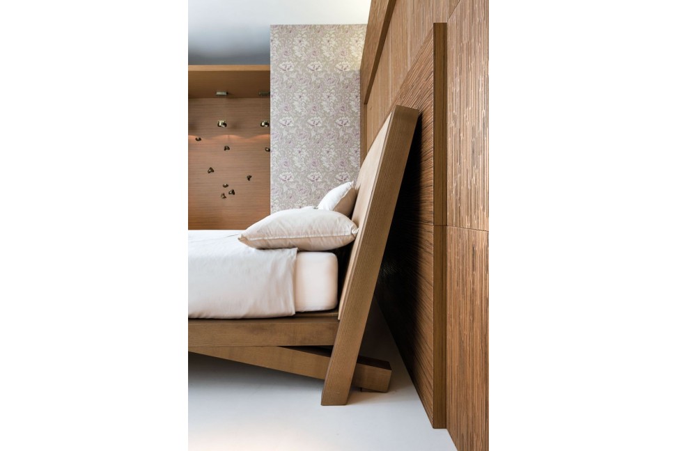 BD 22 is a bed with an essential design and it is born from the collaboration between Bartoli Design and the Laurameroni brand with the aim of highlighting the elegance and beauty of a structural element such as solid wood. It has indeed a minimalist structure in solid wood, proposed in numerous finishes; the padded headboard is large and can be upholstered in fabric, elegant velvet or in the wide range of leathers proposed by Laurameroni.Laurameroni