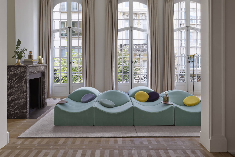 After having long been present exclusively in the collections of the Musée des Arts décoratifs, the Asmara sofa designed by Bernard Govin now makes its impressive return to the collection on the occasion of Ligne Roset's 160th anniversary. Nostalgics, collectors, co-working enthusiasts and, above all, those with a visionary outlook will take the opportunity to rediscover this legendary armchair. Its comfort has been further perfected through the latest innovations from Roset's Research and Development department! Asmara presents itself as a modular sofa with stretch fabric, whose concave forms sensually envelop the contours of the body in an aesthetically anthropomorphic design. Fabric-covered polyurethane elements are combined to create customised shapes and compositions adaptable to every need.