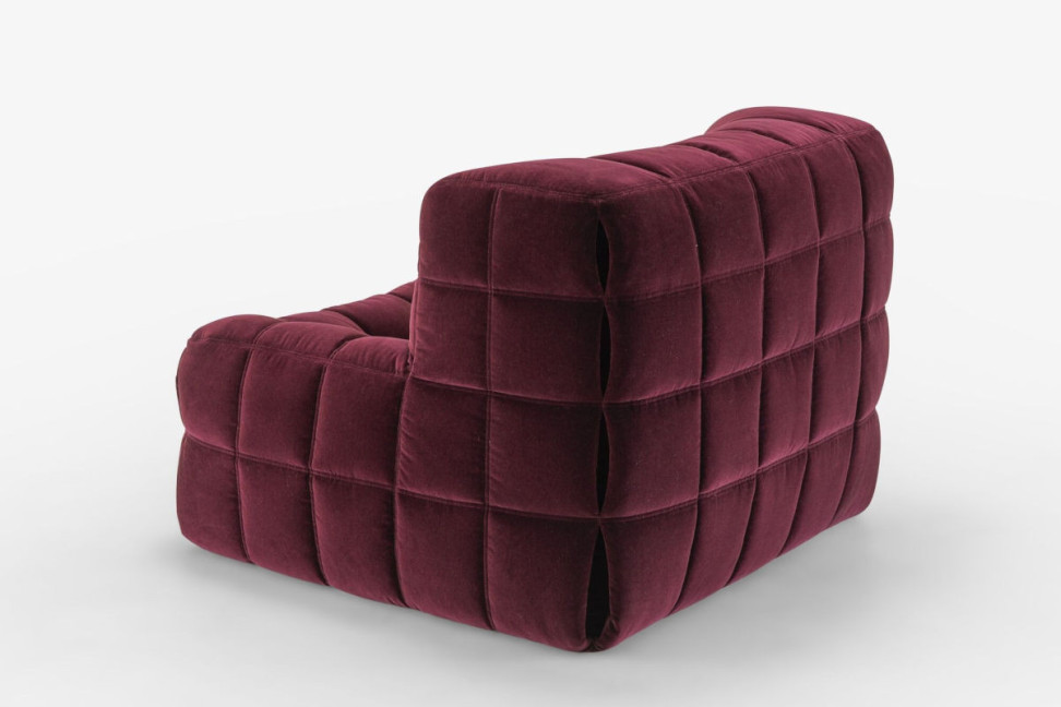 The Ligne Roset Kashima Armchair, designed by Michel Ducaroy, is a seat entirely made of high-density foam that reinterprets the comfort of the classic Chesterfield sofa in an enveloping shape.