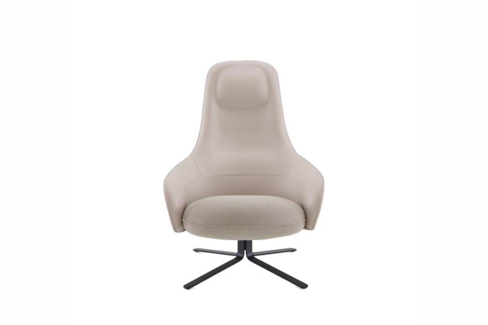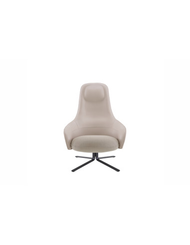 The Moa high-back armchair, created by Japanese-born designer Keiji Takeuchi for Ligne Roset, features a metal base available in two variants: black lacquer or chrome. The seat and backrest can be upholstered independently in fabric, microfibre, or leather. The Moa line also includes a pouf and a small table, excellent complements to the armchair.