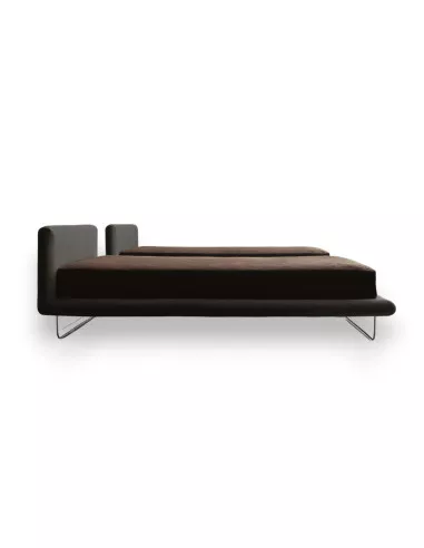 The Avalon bed by Living Divani has headboard and frame in doublepanelled pine and poplar. Its base is in tubular AISI 304 stainless steel with matt satin finish; the padding is in differentiated density polyurethane foam. Fabric or leather upholstery available, fully removable. Available also in American Queen and King size.