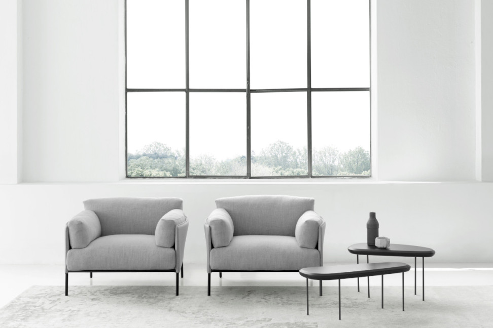The Greene armchair designed by David Lopez Quincoces for Living Divani presents itself with sinuous lines and soft cushions.