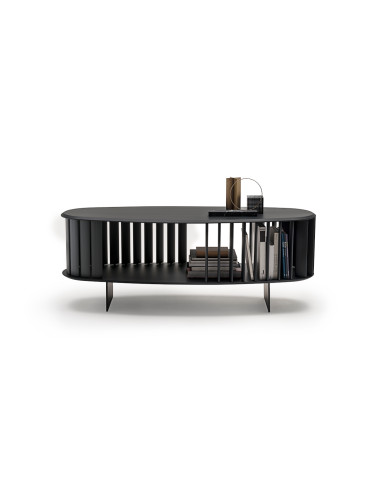Createded by the American designer Stephen Burks, Islands by Living Divani is a storage unit designed to furnish urban environments and to meet the changing needs of modern day life. Its structure, apparently essential, is actually able to transform itself thanks to the presence of wooden strips along the entire perimeter, which can rotate around the central pivot opening and closing according to the needs. This feature not only makes this sideboard versatile and functional, but also gives movement to the static structure, with a modern and original effect.
