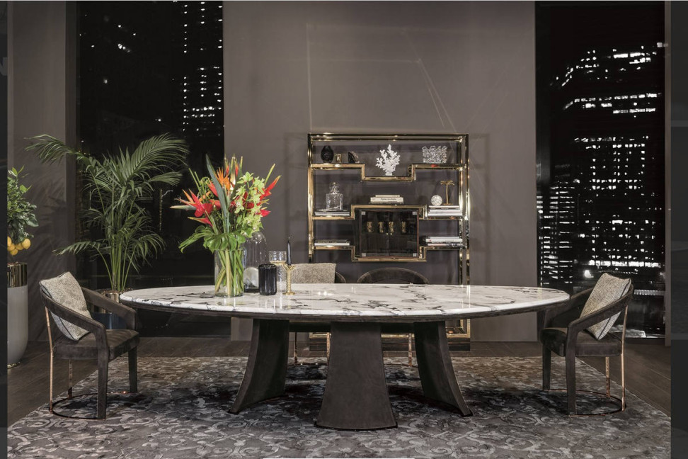 The Damien table was born from the collaboration of the designer Giuseppe Viganò with the Longhi brand.