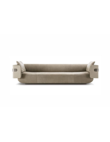 Thanks to its stable and resistant seat, the Mi sofa, created by designer Ben Wu in collaboration with Longhi, is able to transmit a pleasant sensation of softness to those who sit down. The base of this sofa is in painted metal, available in bronze and black; the outer armrests are wrapped in an elegant metal band. Due to the special workmanship, the cover of the Mi sofa is not removable.