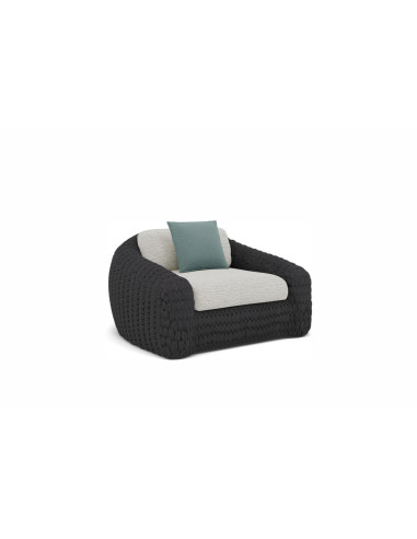 The Kobo Outdoor Armchair exhibits the boldness of Manutti's made-in-Belgium craftsmanship, driven by the creative flair of the designer Stephane De Winter. Despite being intended for outdoor settings, it can equally well adapt at home within a covered terrace or enclosed space. Setting itself apart from other outdoor armchairs, it stands out for the plasticity and softness of its features, with a structure entirely crafted from handwoven rope around a welded aluminum frame.