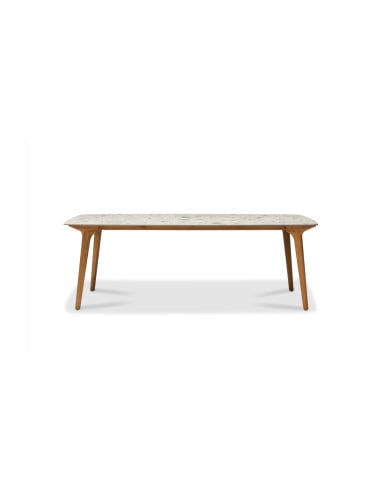 The outdoor Torsa table by Manutti, designed by Stephane De Winter, embodies the essence of refinement with its sleek and light lines. Its sculpted wooden base pairs perfectly with a faux marble or monochromatic ceramic top, making it ideal for any outdoor moment, whether it's a relaxing coffee, a festive dinner, or a lively aperitif.