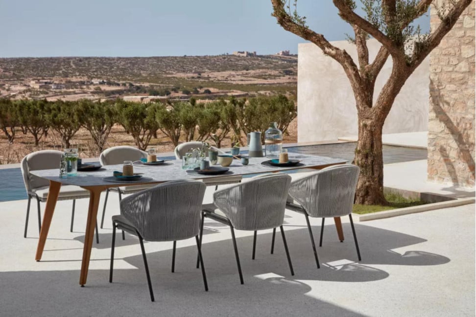 The price of a Torsa outdoor table by Manutti starts at around € 2,100 and can exceed € 8,000, varying based on the desired size and finishes.