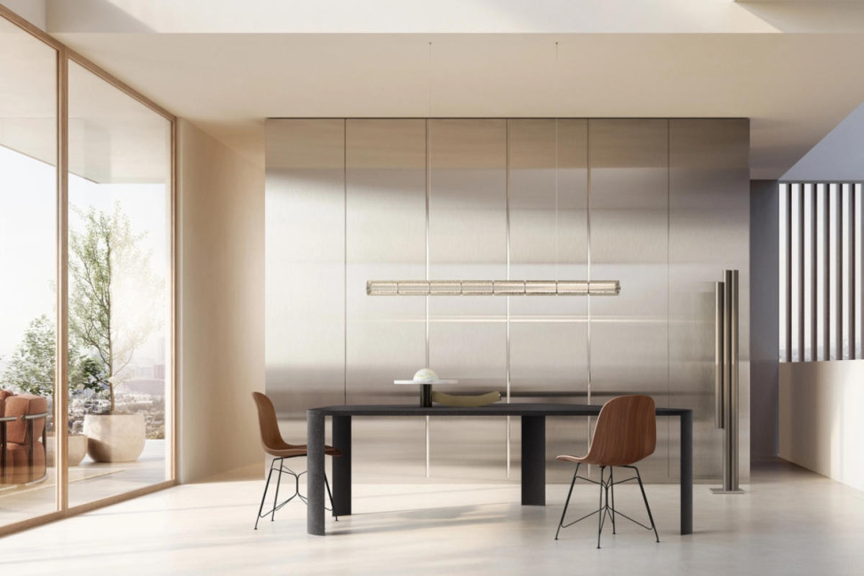The Bonnet Table by Italian designer Marialaura Irvine for MDF Italia is an elegant, sculptural dining table with a strong contemporary identity, capable of completely transforming the atmosphere of a room. The aesthetic strength of the Bonnet table comes from the meeting of its tapered legs, resembling gently rounded blades, and the asymmetrical, fluid tabletop. This balance between rigor and softness reveals the designer's careful attention to detail, introducing a new formal language in the landscape of modern dining tables.