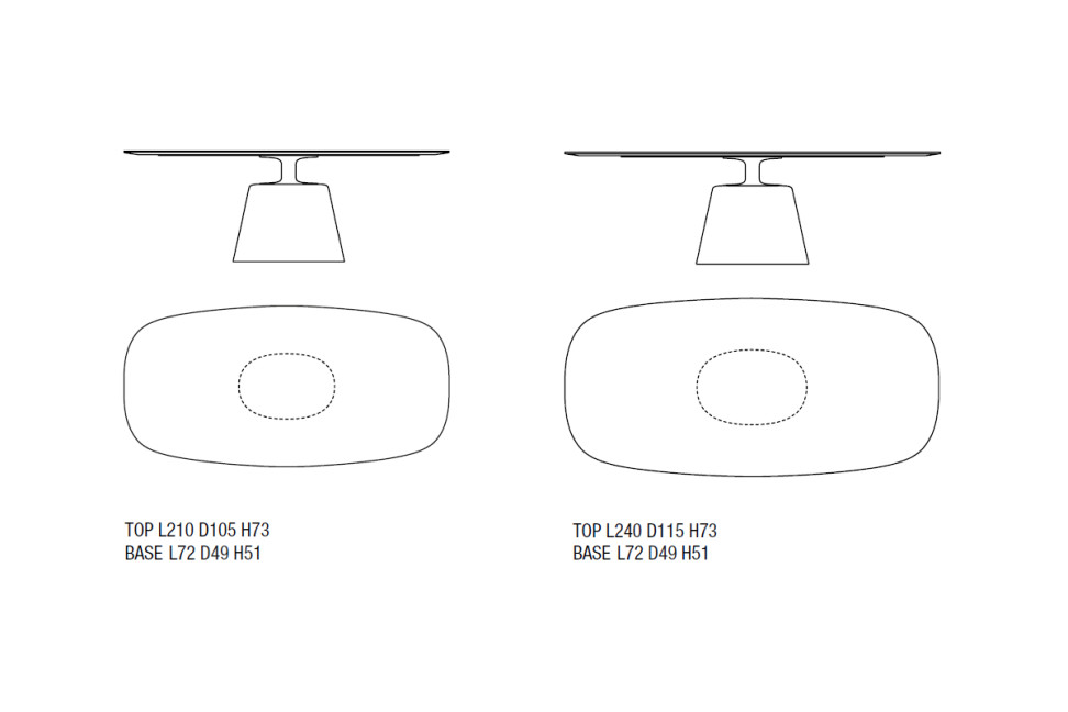 Rock Table Maxi is available in two different top sizes: cm 210x105 and cm 240x115, both with a height of 73 cm. This variety of sizes offers flexibility in choosing a table to suit the specific needs of the space available. Whether you have a more compact room or a larger space, you can select the table size that best suits your situation. This versatility allows you to create custom furniture and optimize space utilization, ensuring a comfortable and functional experience around the Rock Table Maxi table.