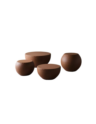 The Bongo low table collection is enriched by a new version in leather by Andrea Parisio. This elegant finish gives these furnishings an even more exclusive and sophisticated look, capable of catching the attention of those looking for a completely unique piece of furniture. The aesthetic value of the Bongo Kuoio low table is undeniable: the leather finish, the artisanal craftsmanship, and attention to detail make it a visually striking piece of furniture, capable of adding a touch of elegance and refinement to any space. Its versatility makes it suitable for any room, from the dining room to the living room, from the bedroom to the study.