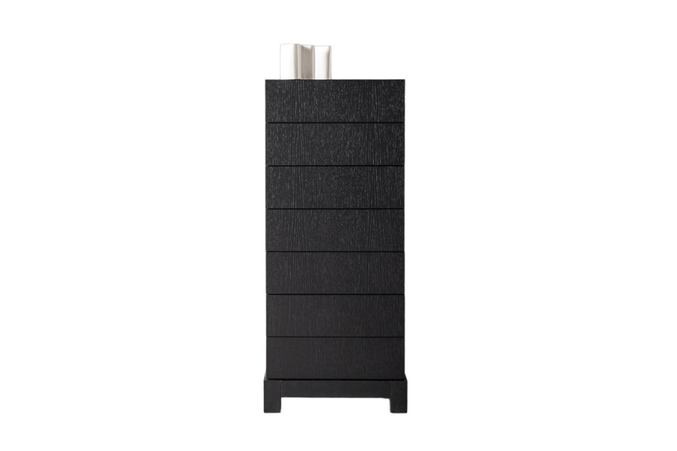 The Meridiani Douglas is a testament to Andrea Parisio's distinctive approach to interior design. One of the most prominent features of the Douglas is its solid structure and linear design. This piece of furniture is crafted with meticulous attention to detail, featuring a solid wood frame that is both sturdy and refined. The wood's finish and craftsmanship are impeccable, creating a smooth and even surface that highlights the natural beauty of the material. The color and finish of the Douglas can be customized to suit personal taste and the surrounding decor, as it is available in both wood veneer and matte lacquered finishes. The chest of drawers is available in various dimensions, both horizontal and vertical.
