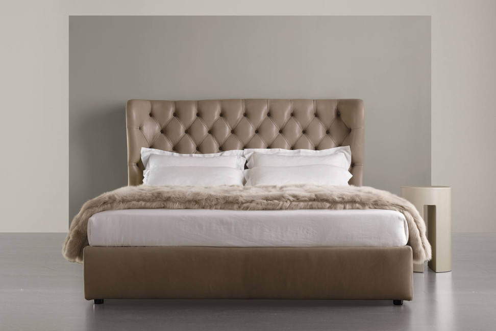 The Lauren bed collection, by Andrea Parisio for Maridiai, becomes iconic thanks to the precious detail of the capitonné workmanship, a work of art created entirely by hand. The headboard plays a prominent role in this situation, characterised by sinuous and slightly rounded curves, which give this bed a touch of sophisticated elegance and the ability to reinterpret traditional elements in a contemporary style. In addition, a completely undecorated version is available, ideal for adapting perfectly to more modern environments.