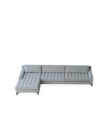 The Prince Quilt sofa, in expo offer in our showroom, is characterized by an L-shaped configuration that allows you to fully enjoy your moments of relaxation. The light gray fabric upholstery gives brightness to the environment, while the quilting of the seat cushions gives a sophisticated touch.