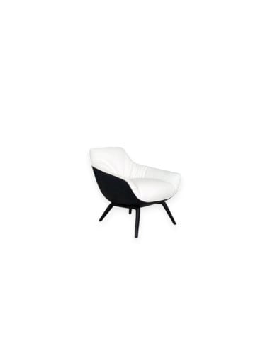 The Florentia armchair, in expo offer in our showroom, is an elegant and refined complement that will perfectly fit into your living area, enriching it with an original touch thanks to its two-colour covering in black and white leather, enhanced by black stained oak legs.