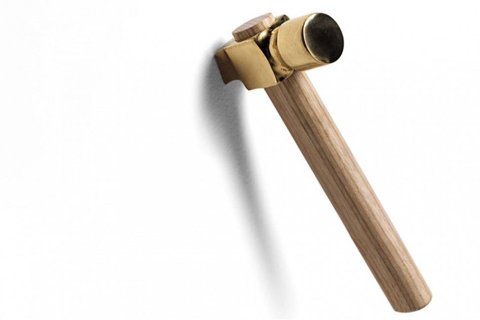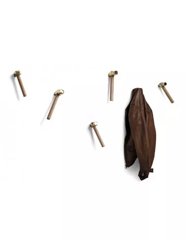 The Italian artist Marcantonio Raimondi Malerba reinvented an indispensable accessory, as a hanger, with an unexpected design. Mogg, Italian company renowned for its original products and its attention to detail, realizes the small hammers in ash wood handle and the tip in polished nickel brass casting.